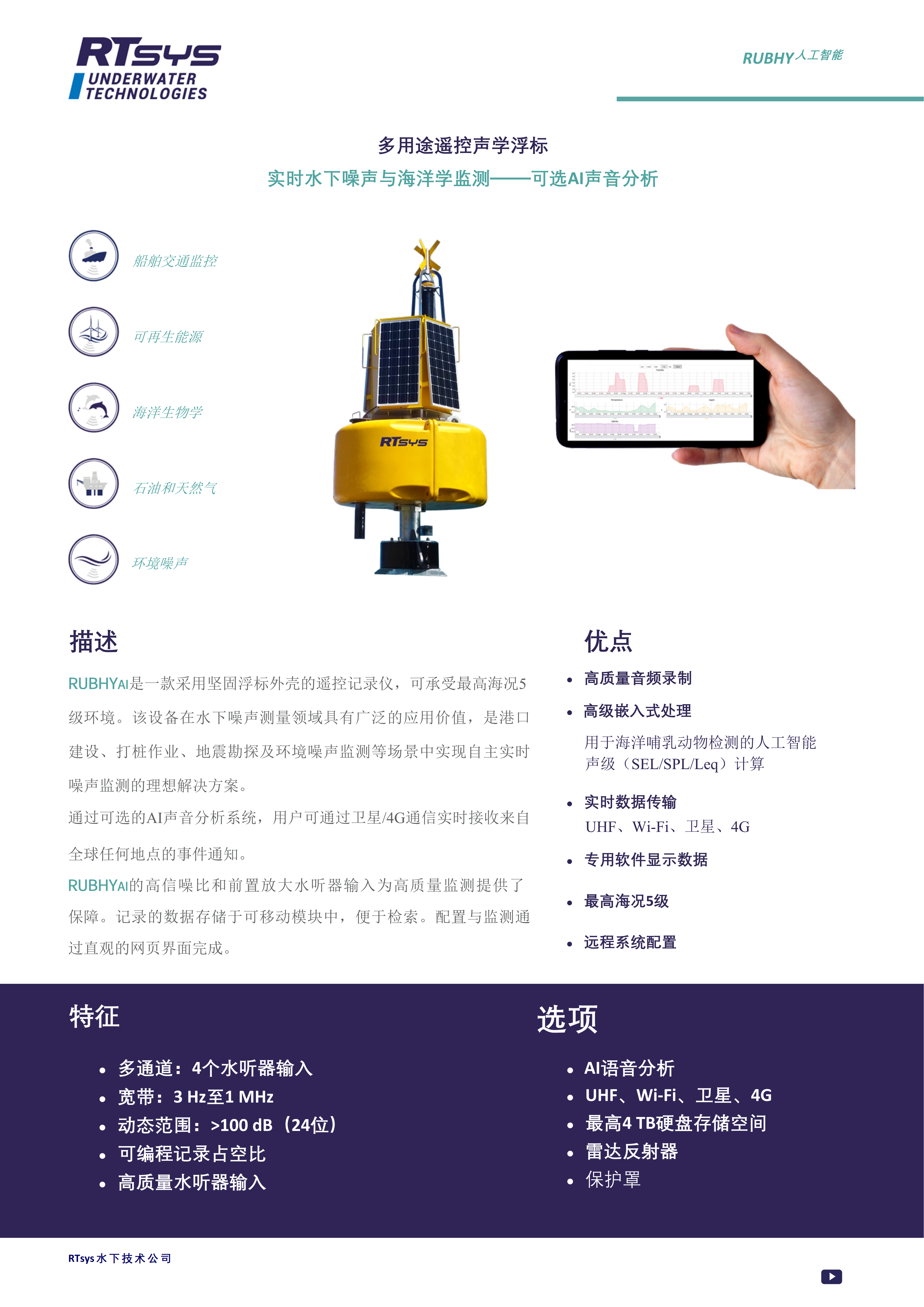 • 产品名称:多用途遥控声学浮标 实时水下噪声与海洋学监测——可选AI声音分析